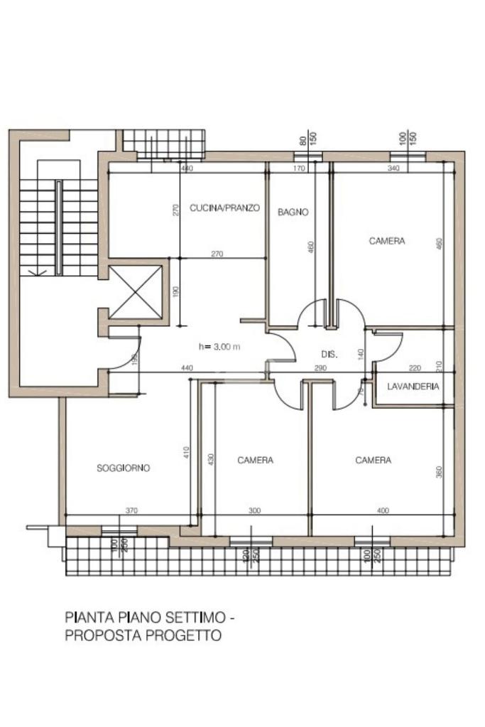 Grazie alla disposizione degli spazi, è possibile creare facilmente una terza camera e una cucina abitabile di generose dimensioni.