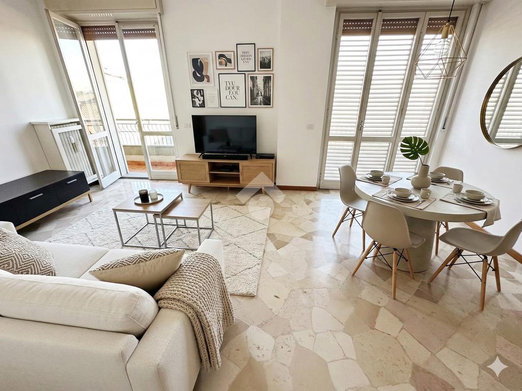 In una delle vie alberate più esclusive di Santa Valeria, Viale Santuario, proponiamo una splendida soluzione al settimo piano di un condominio signorile di otto piani, con servizio di portineria mezza giornata.