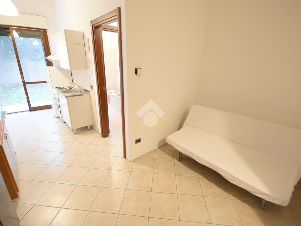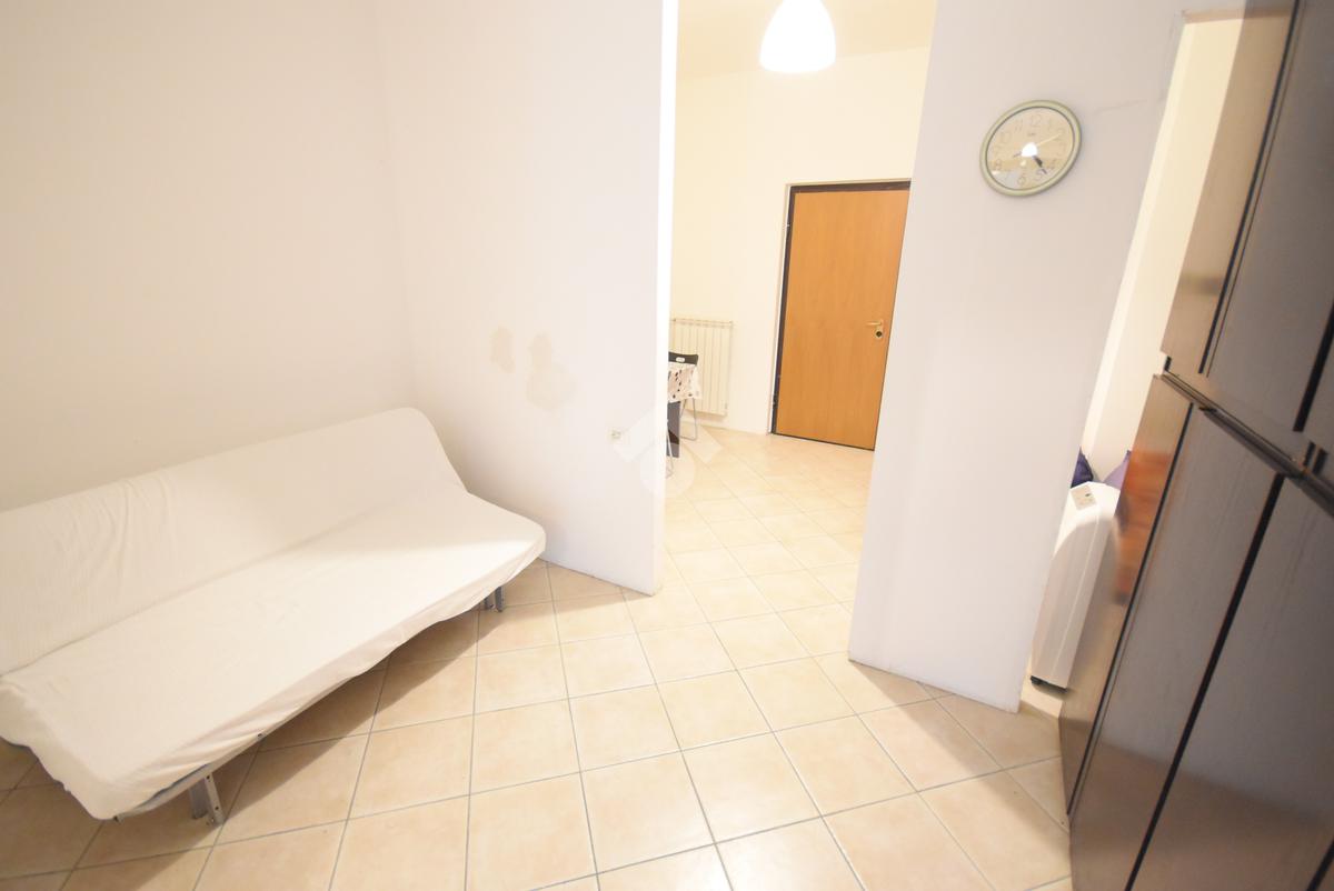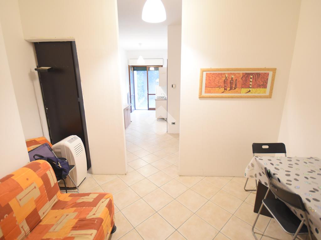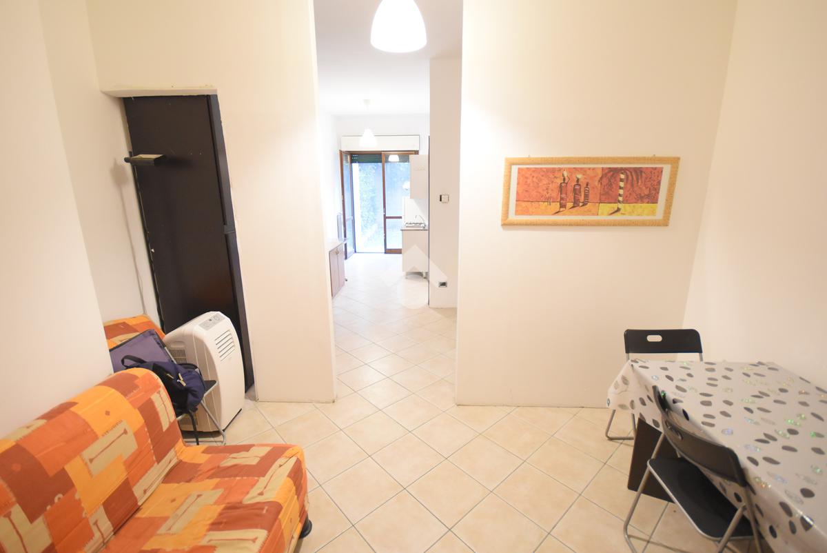 L’appartamento, di circa 40 mq, si apre su un ambiente open space ben distribuito e luminoso, dove trovano spazio l’angolo cottura, la zona pranzo e l’area soggiorno/notte.