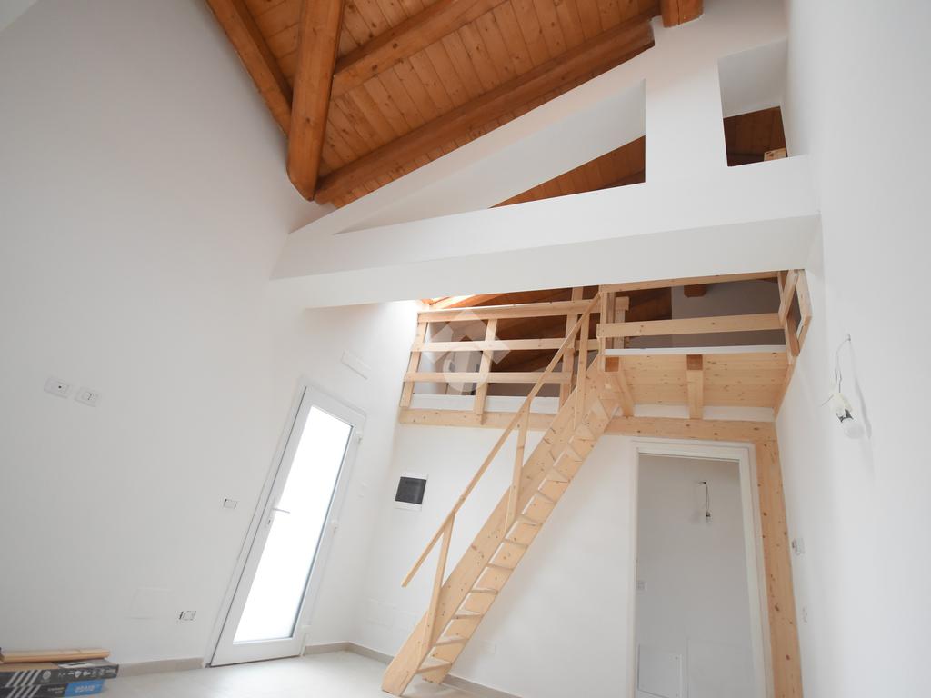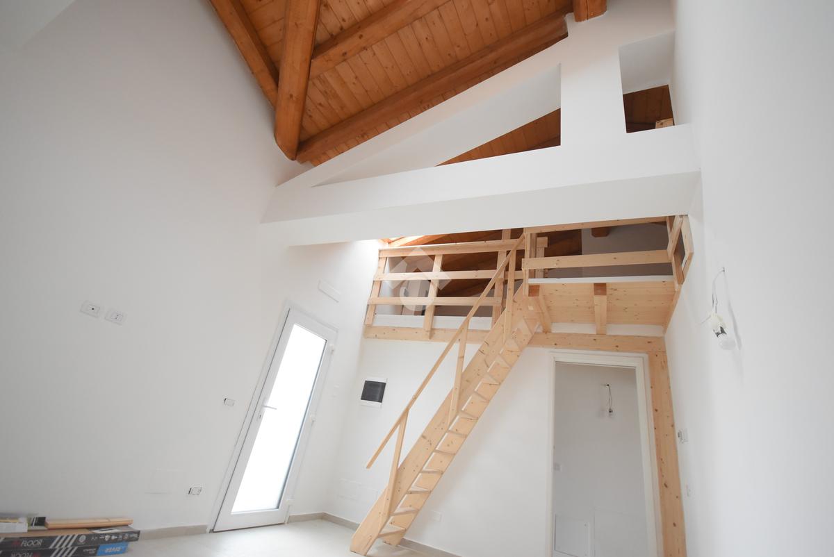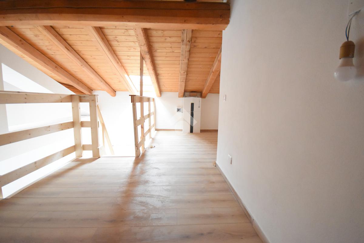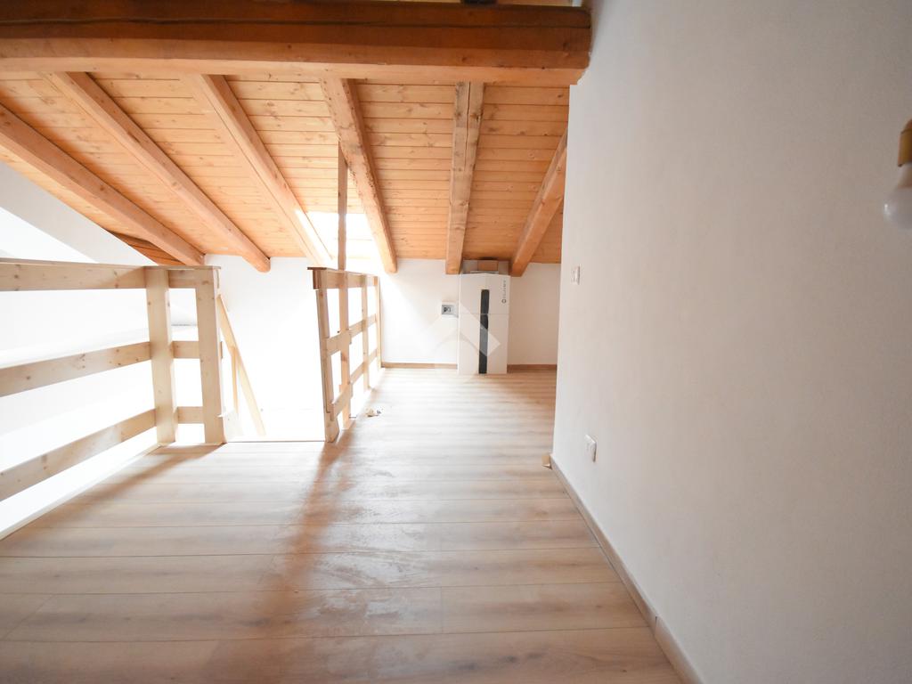 L’appartamento si distingue per il caratteristico soppalco in legno, ideale come studio, zona relax o anche come seconda cameretta. La zona giorno è luminosa e ben distribuita, con soggiorno e cucina a vista, mentre la camera matrimoniale offre tranquillità e privacy. Completa la soluzione un bagno finestrato con finiture moderne.