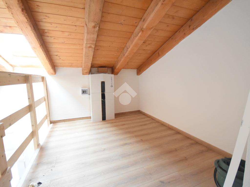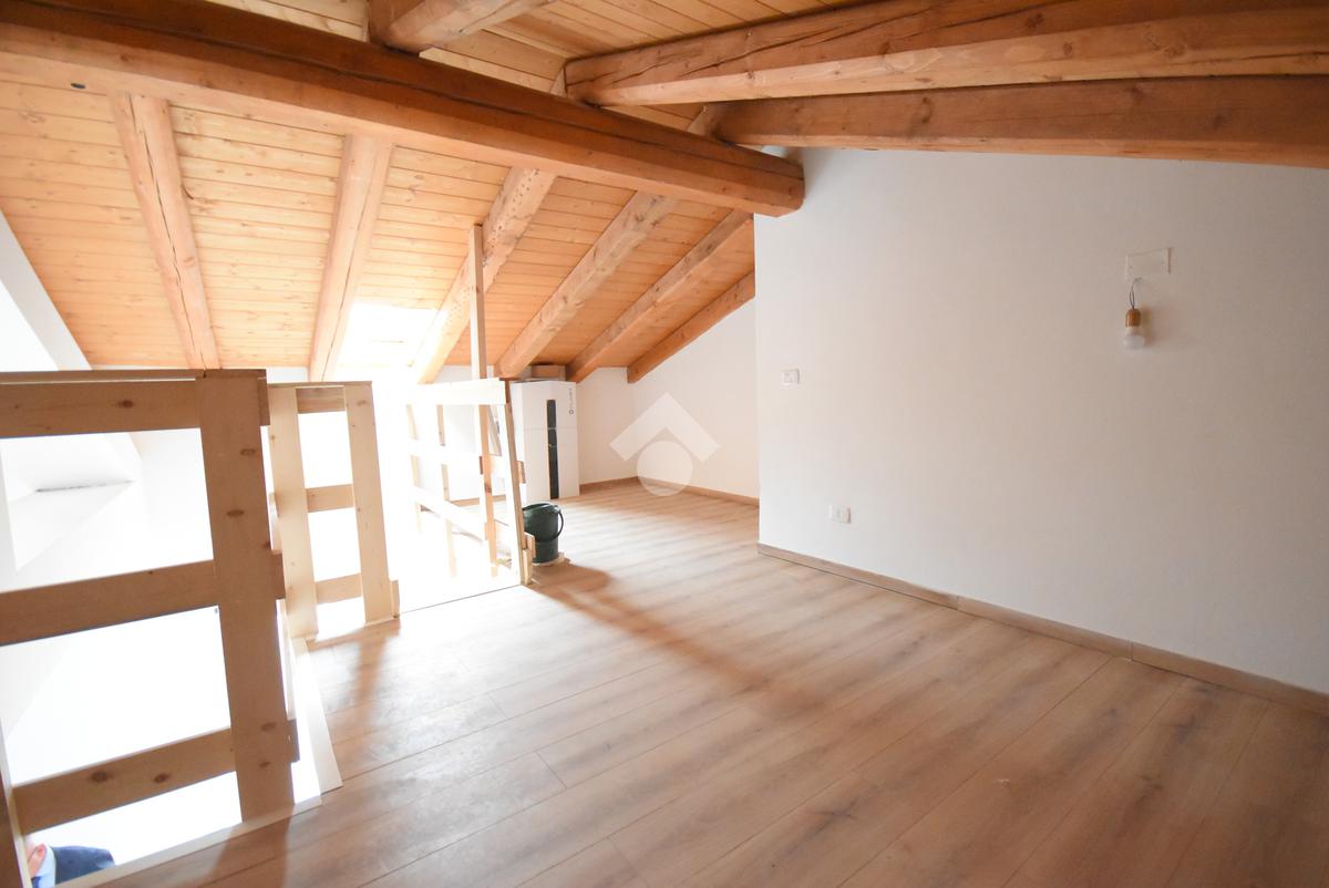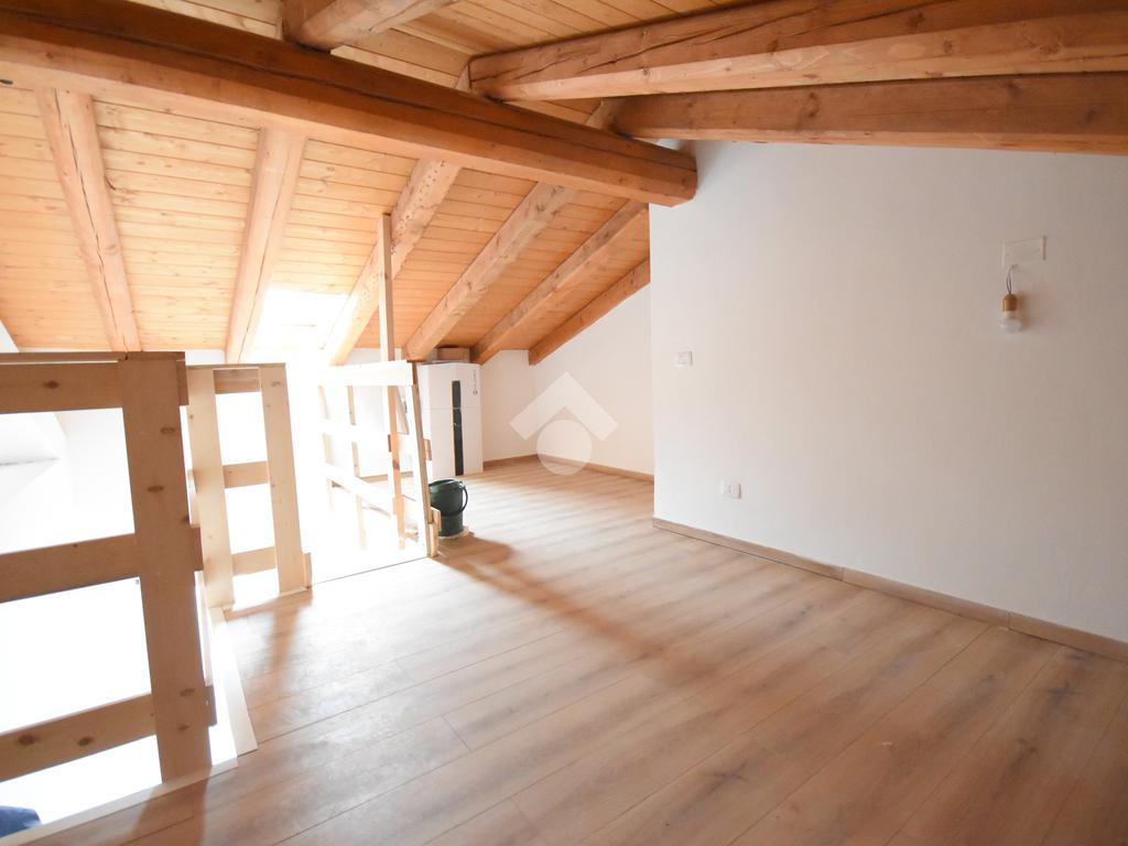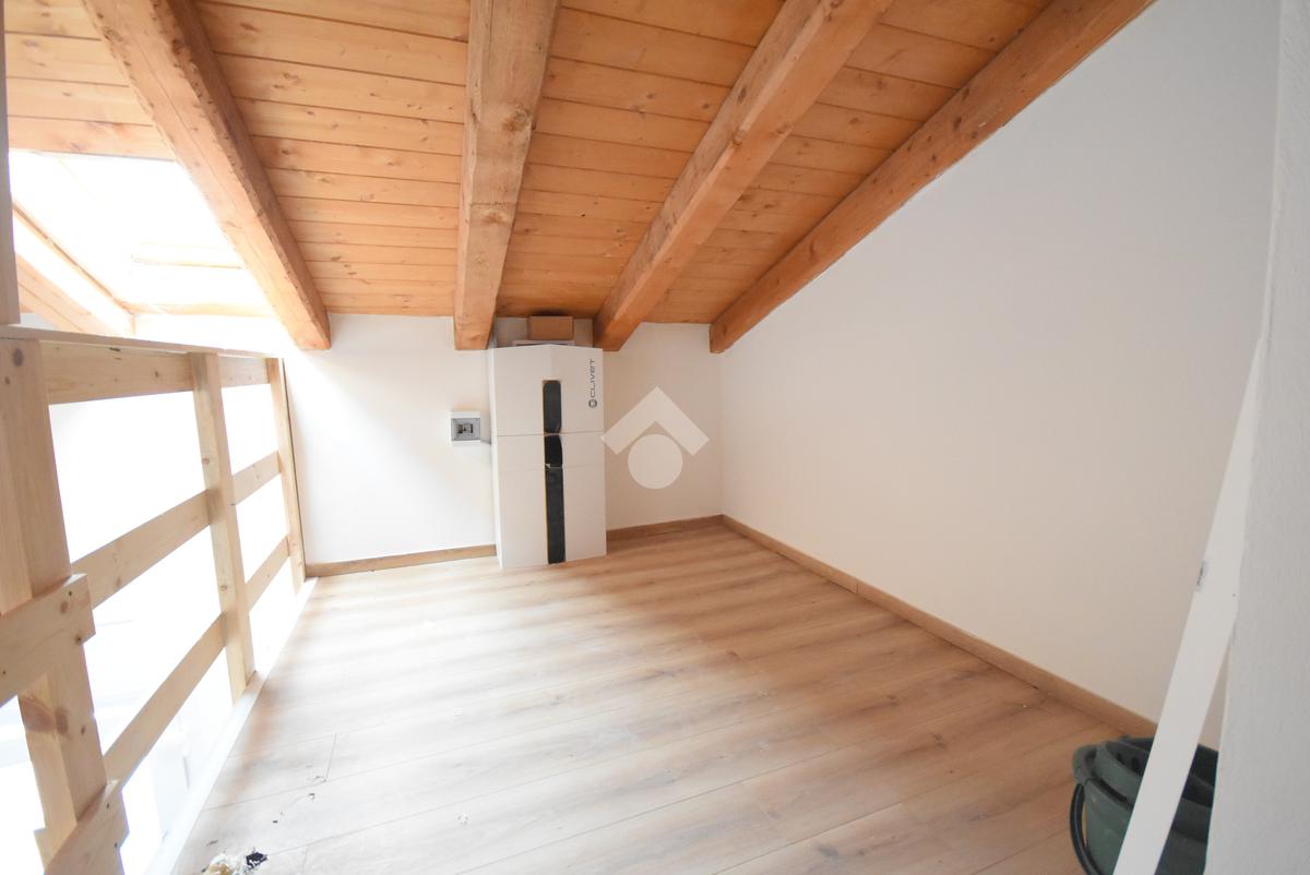 L’appartamento si distingue per il caratteristico soppalco in legno, ideale come studio, zona relax o anche come seconda cameretta. La zona giorno è luminosa e ben distribuita, con soggiorno e cucina a vista, mentre la camera matrimoniale offre tranquillità e privacy. Completa la soluzione un bagno finestrato con finiture moderne.