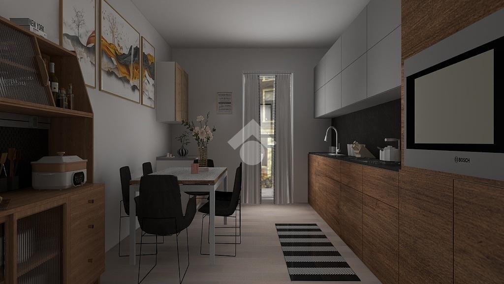 L’appartamento offre inoltre la possibilità di trasformazione in un trilocale: ricavando una cameretta al posto della cucina e creando un unico ambiente open space soggiorno con angolo cottura.