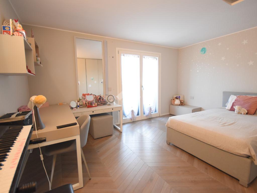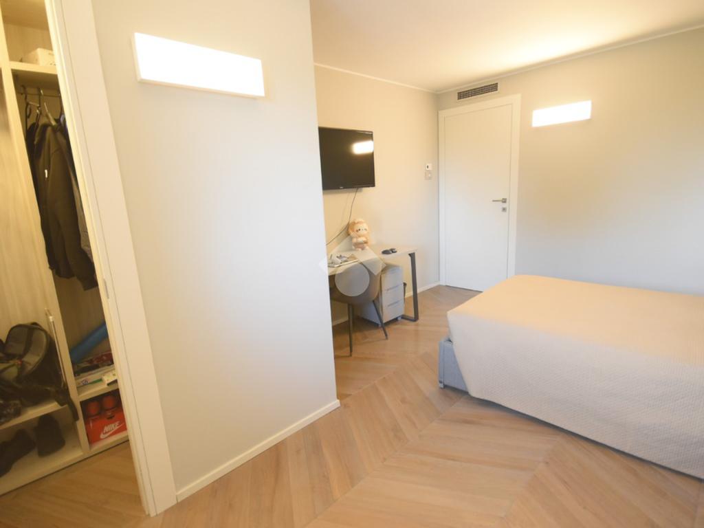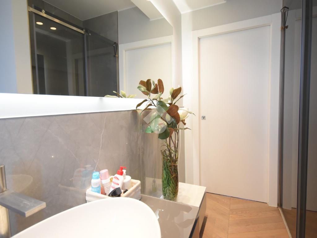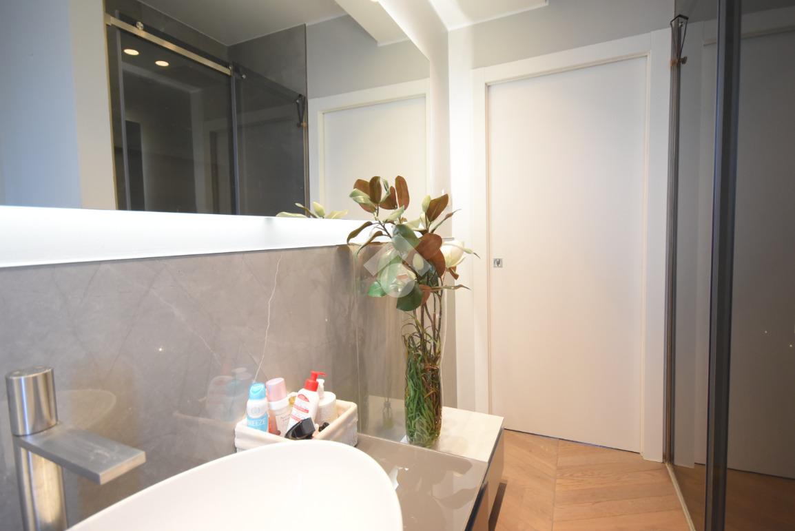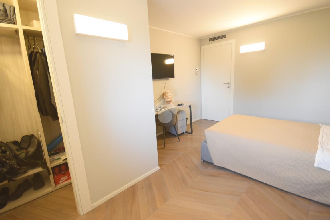 La suite padronale dispone di un’ampia cabina armadio e di un bagno finestrato con doccia scenica, mentre due ulteriori camere, un secondo bagno finestrato con doccia doppia e una pratica lavanderia offrono spazi generosi e ben distribuiti.