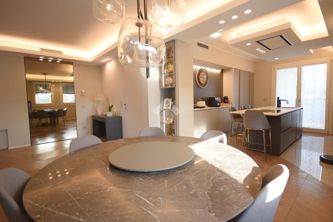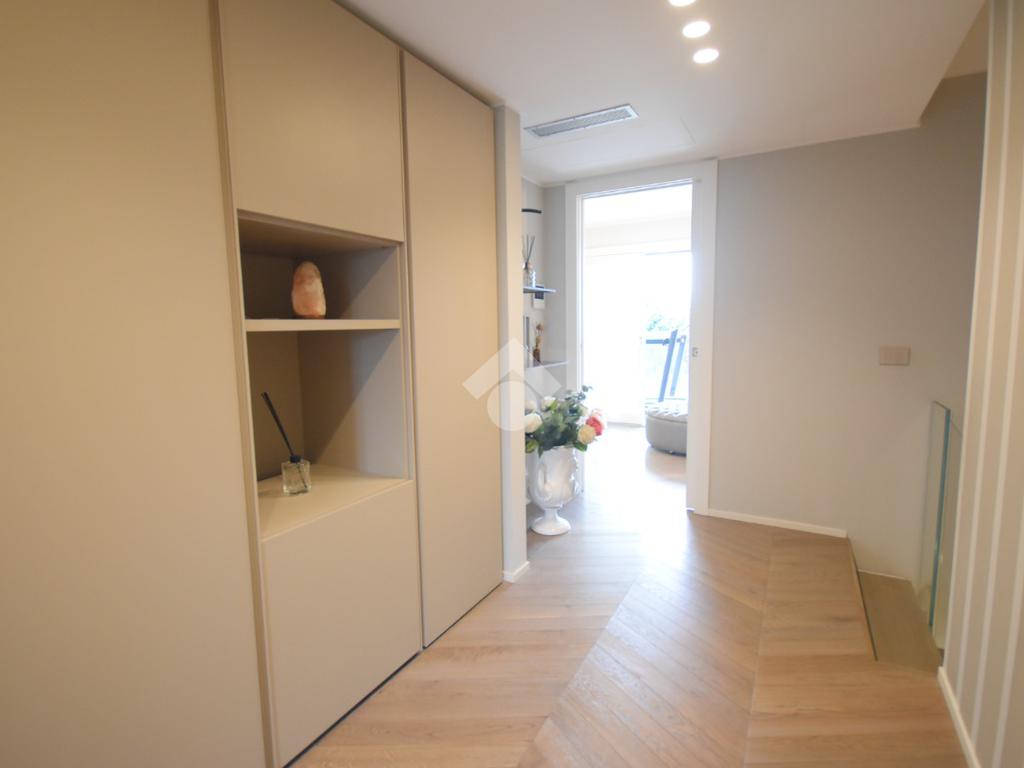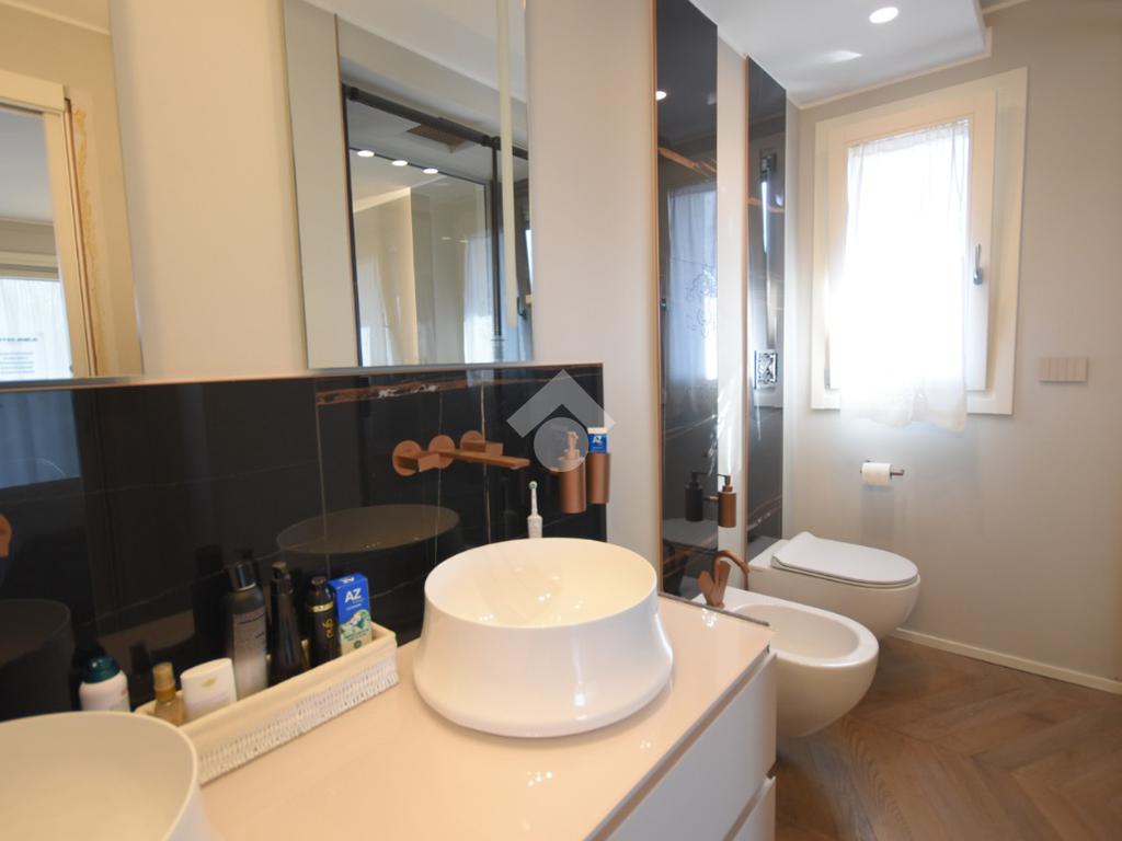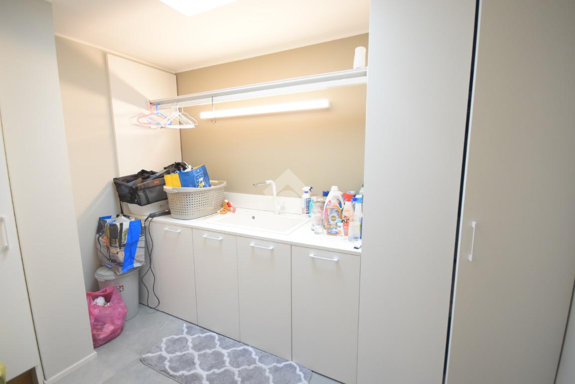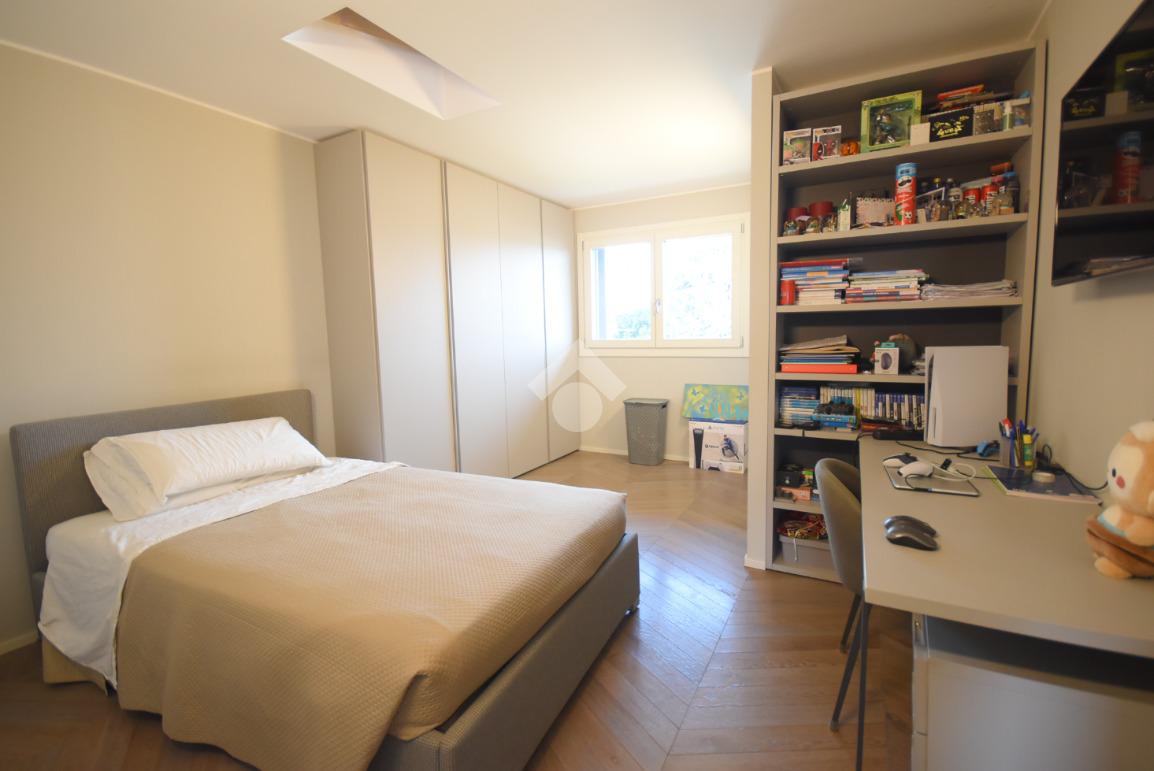 La suite padronale dispone di un’ampia cabina armadio e di un bagno finestrato con doccia scenica, mentre due ulteriori camere, un secondo bagno finestrato con doccia doppia e una pratica lavanderia offrono spazi generosi e ben distribuiti.