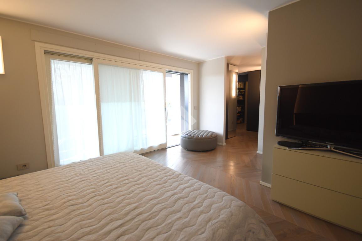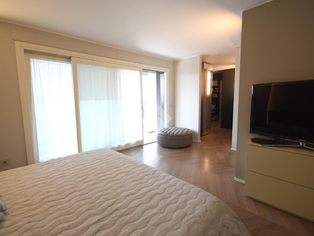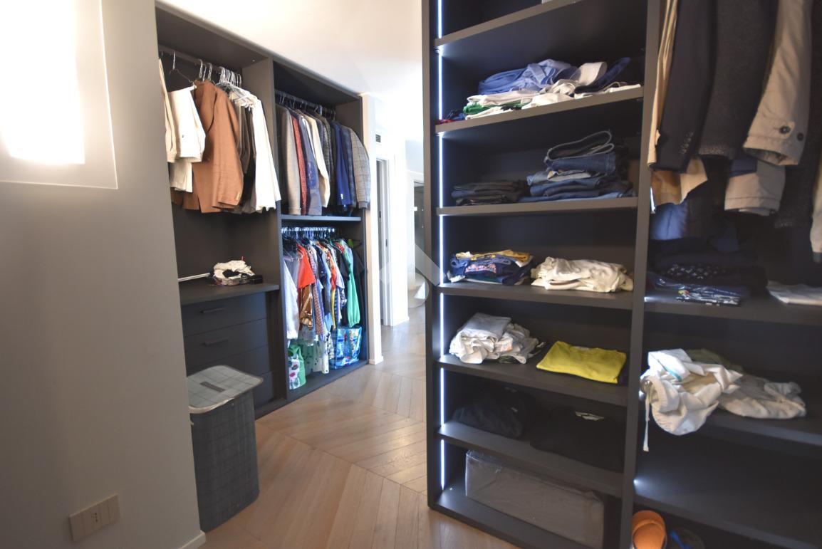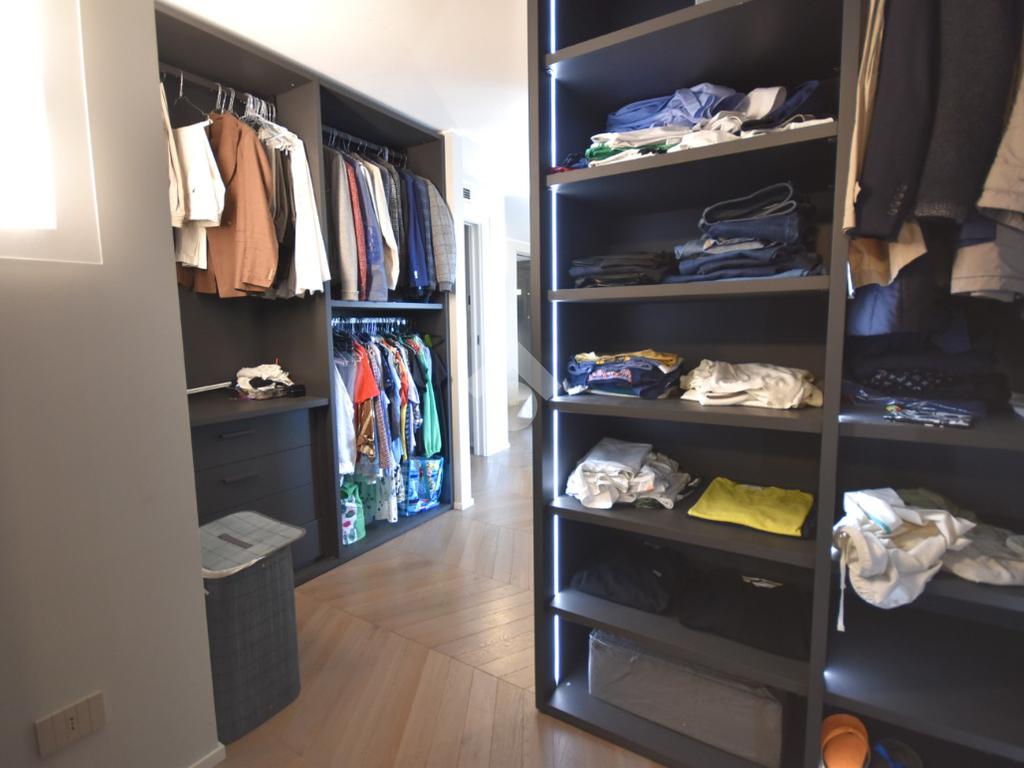 Una cabina armadio di design, separata da una porta in vetro, impreziosisce l’ambiente, mentre uno studio, facilmente trasformabile in camera, e un bagno moderno finestrato con doccia doppia completano il livello.