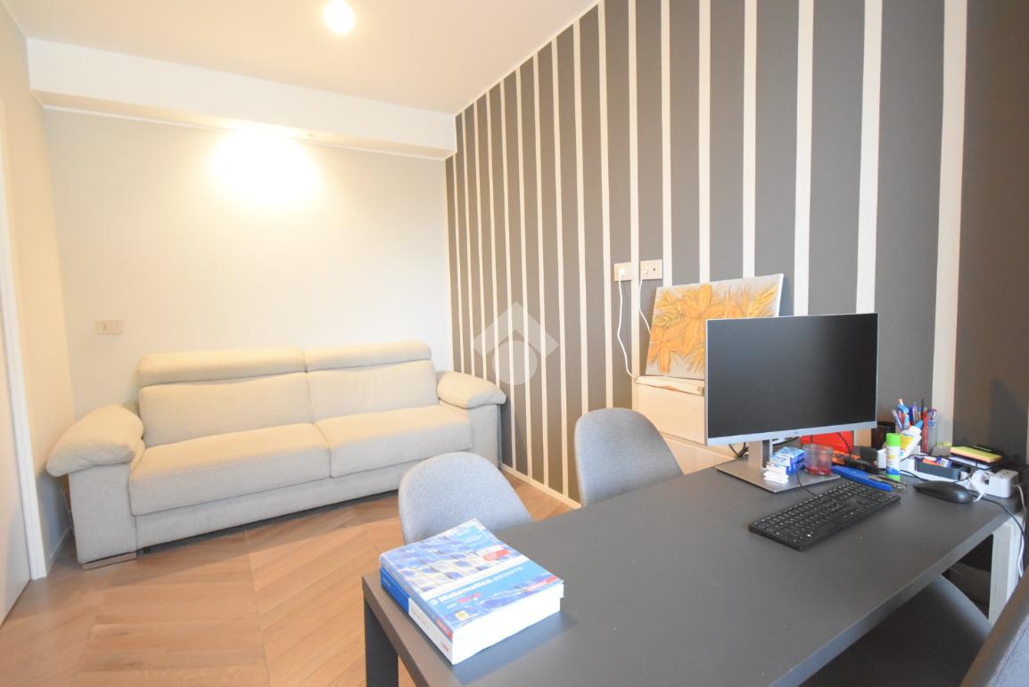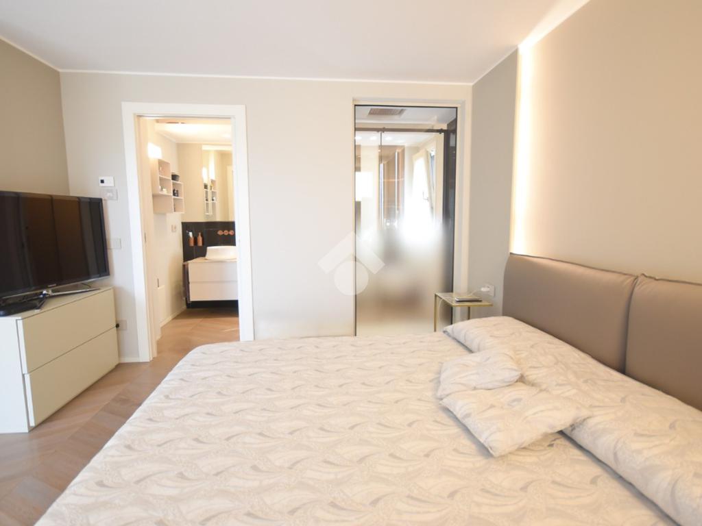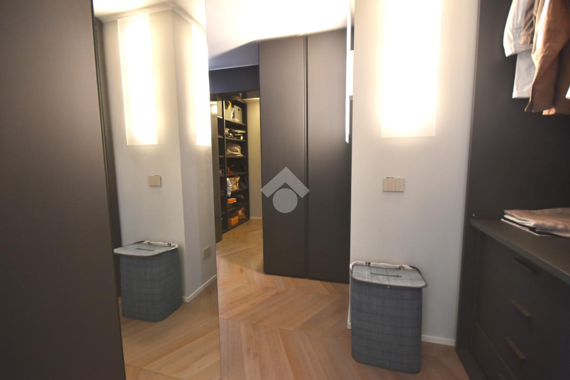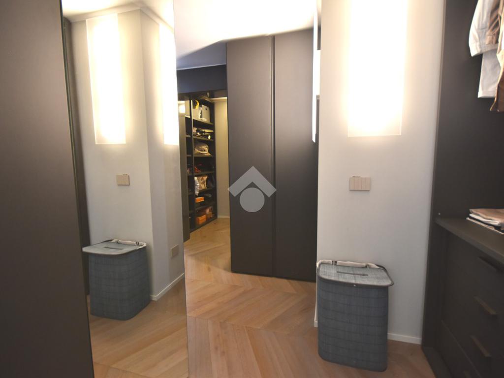 Una cabina armadio di design, separata da una porta in vetro, impreziosisce l’ambiente, mentre uno studio, facilmente trasformabile in camera, e un bagno moderno finestrato con doccia doppia completano il livello.