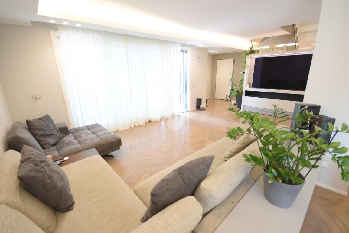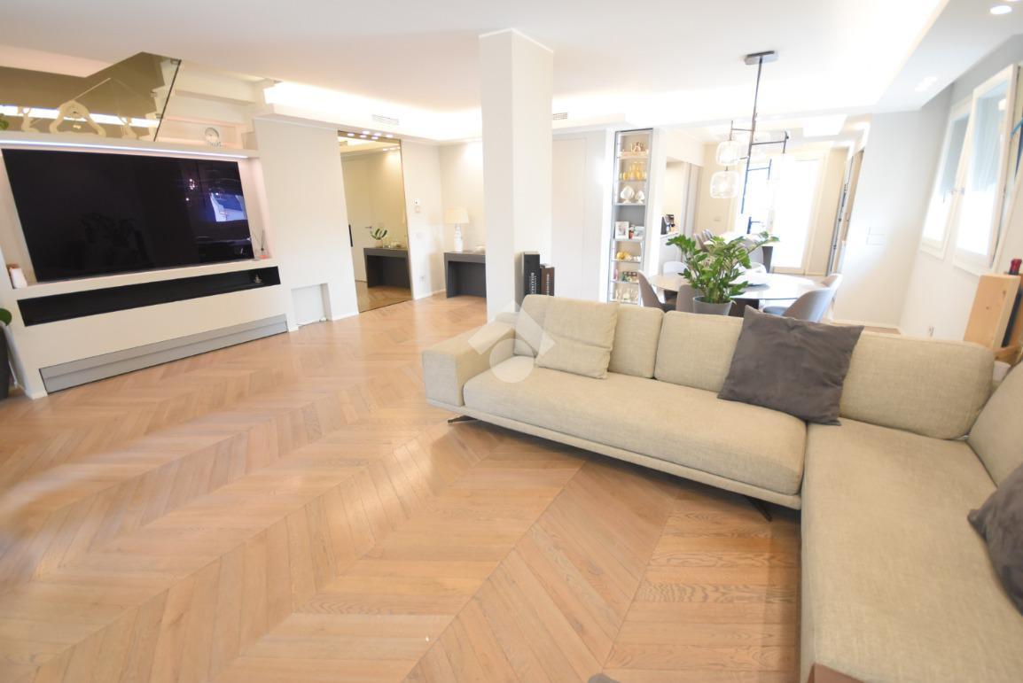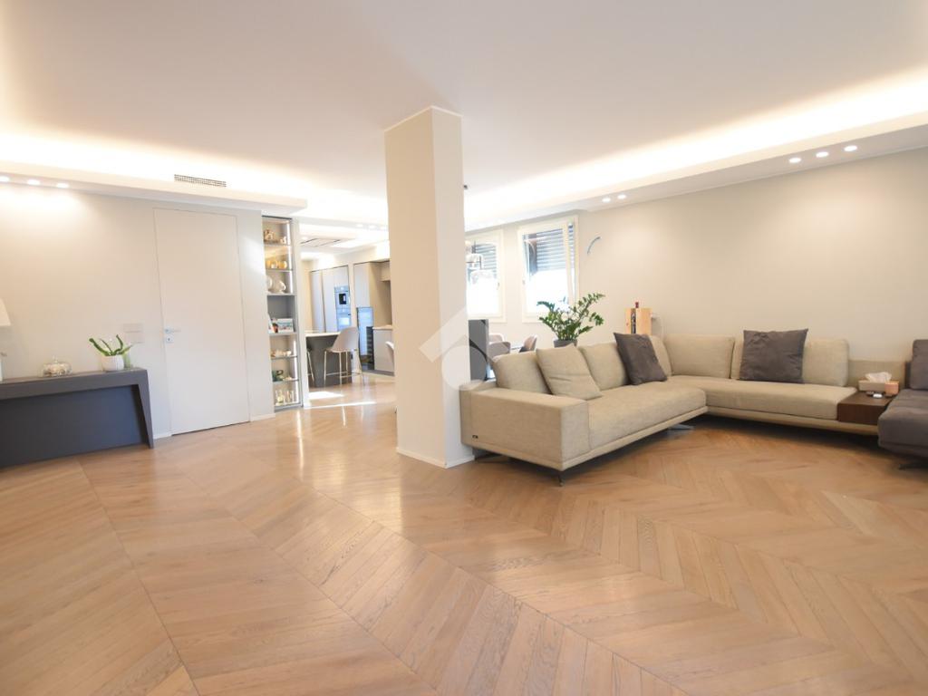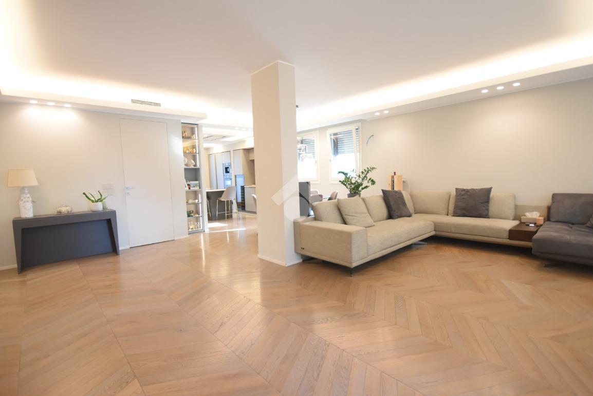Ogni dettaglio è stato studiato da un interior designer con cura sartoriale: parquet di pregio, arredi su misura e finiture extra capitolato contribuiscono a creare un’atmosfera calda e sofisticata.