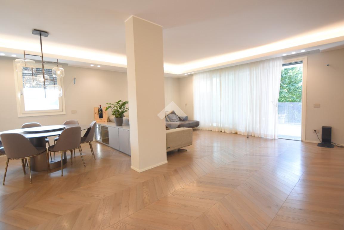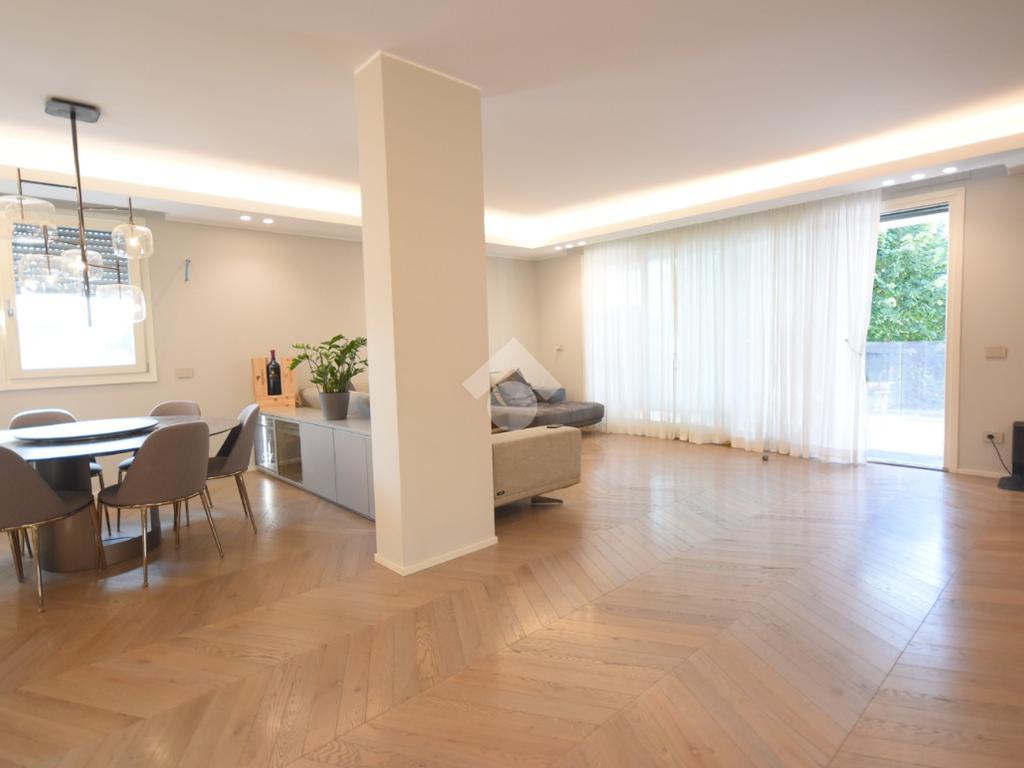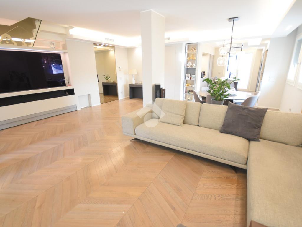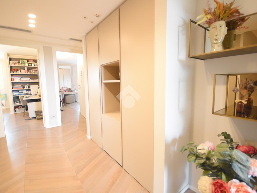 Ogni dettaglio è stato studiato da un interior designer con cura sartoriale: parquet di pregio, arredi su misura e finiture extra capitolato contribuiscono a creare un’atmosfera calda e sofisticata.