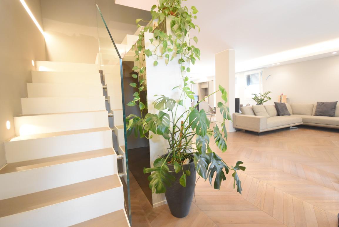 L’eleganza architettonica si unisce a comfort e privacy: l’appartamento occupa il secondo e terzo piano, collegati internamente da una scala di design e al livello superiore gode dell’unicità di essere l’unica abitazione presente sul piano.
