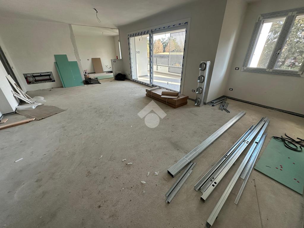 L’appartamento offre inoltre la possibilità di trasformarsi in un quadrilocale, unendo la zona giorno e la cucina per creare un ampio living e ricavando la seconda cameretta nell’attuale cucina.