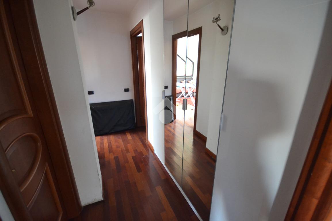 Il disimpegno ci conduce al servizio finestrato con doccia, alla cameretta e alla camera da letto con servizio privato con vasca.
