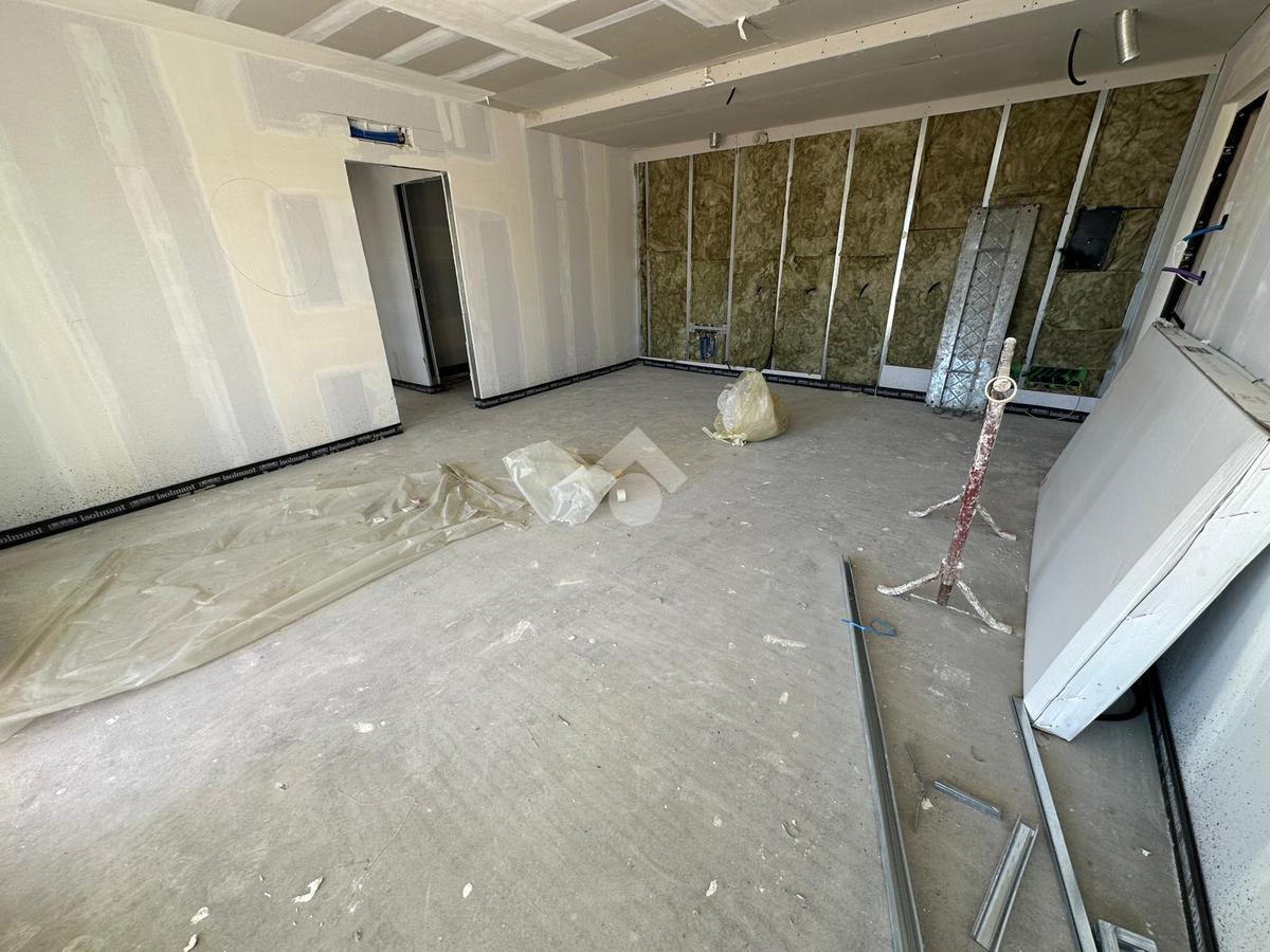 L’ingresso si apre su un’ampia zona giorno con cucina a vista, elegante e funzionale, che si affaccia su un grande terrazzo coperto, ideale per vivere appieno lo spazio esterno in ogni stagione.