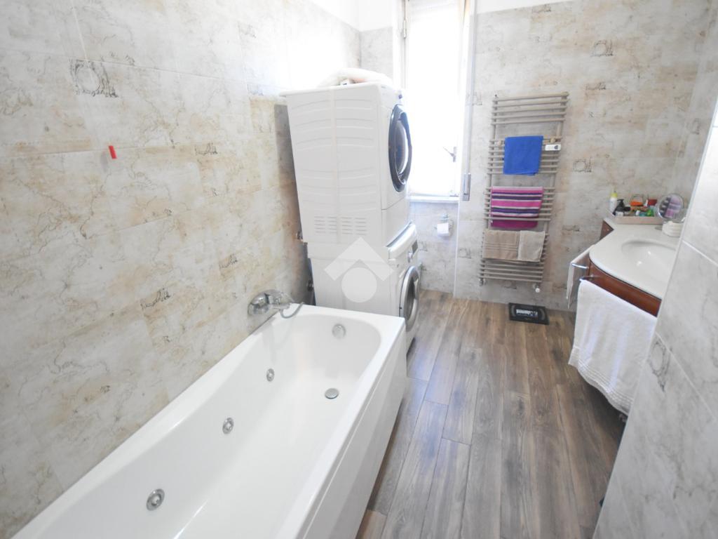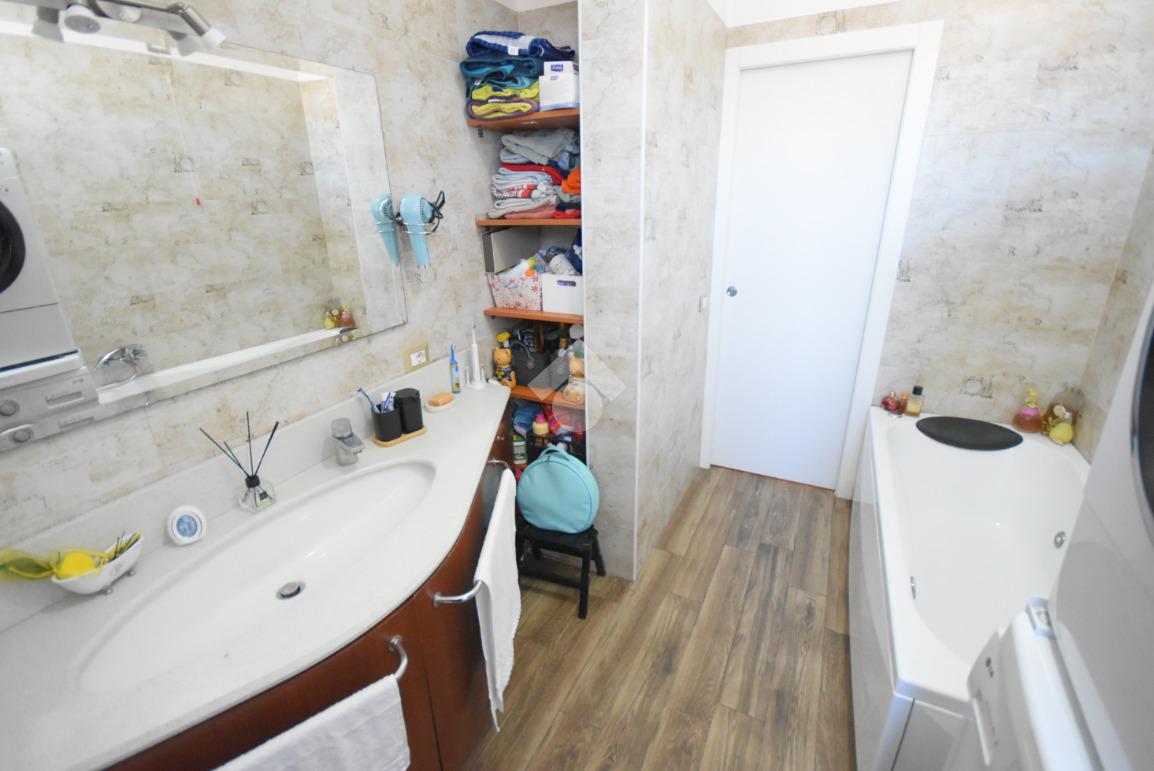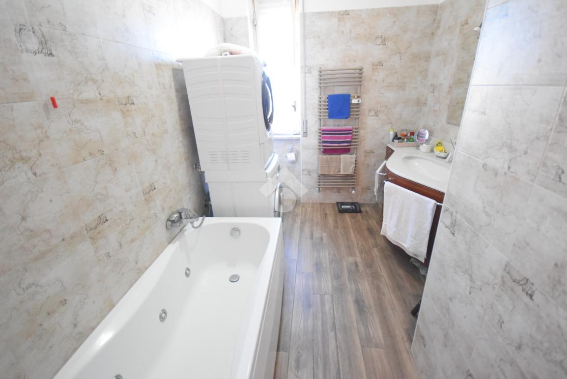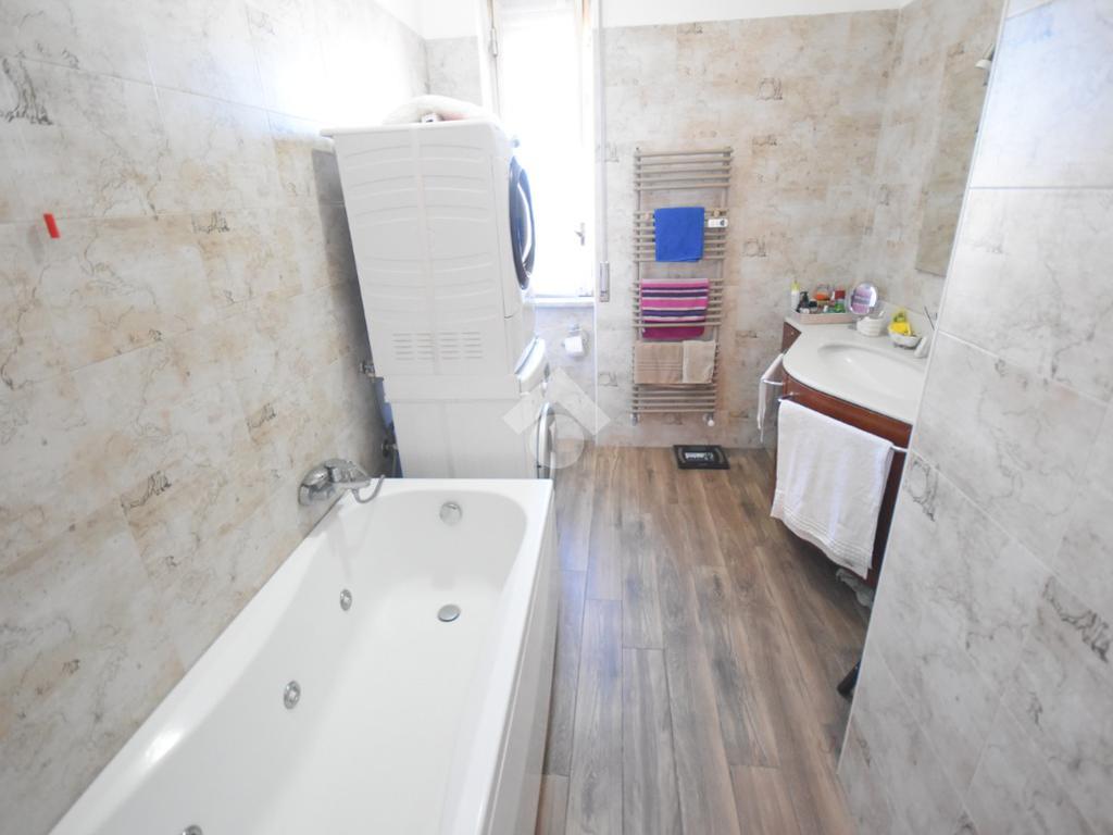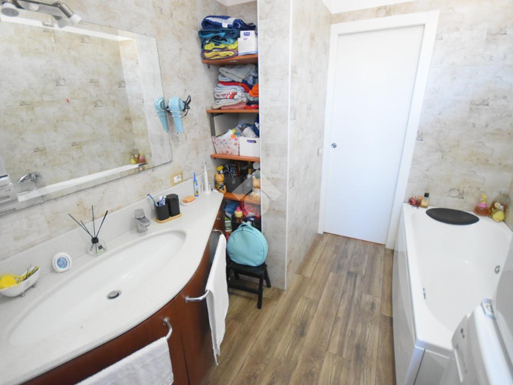 La soluzione è completata da doppi servizi finestrati, ristrutturati con materiali di qualità.