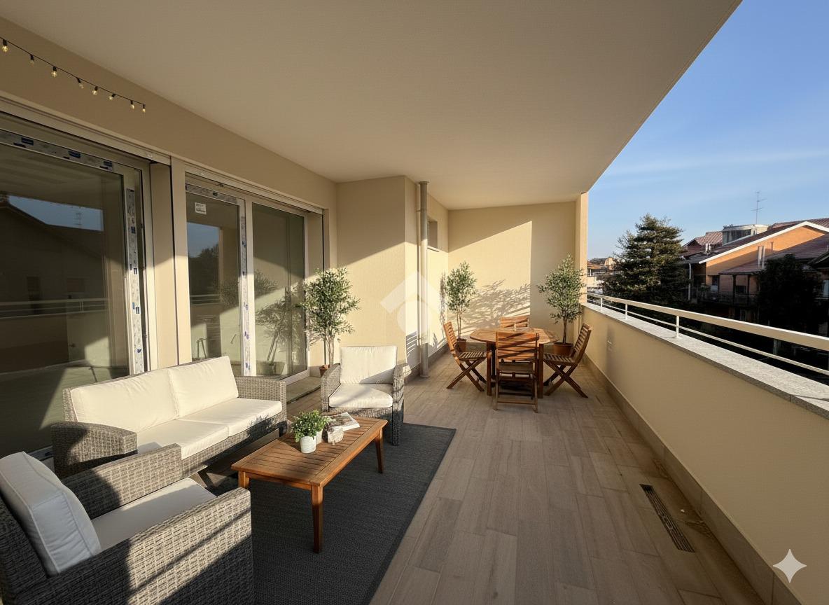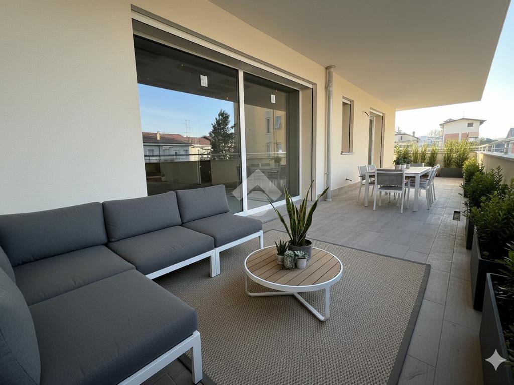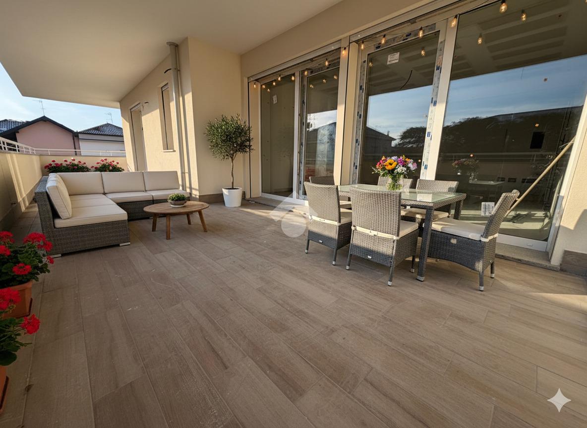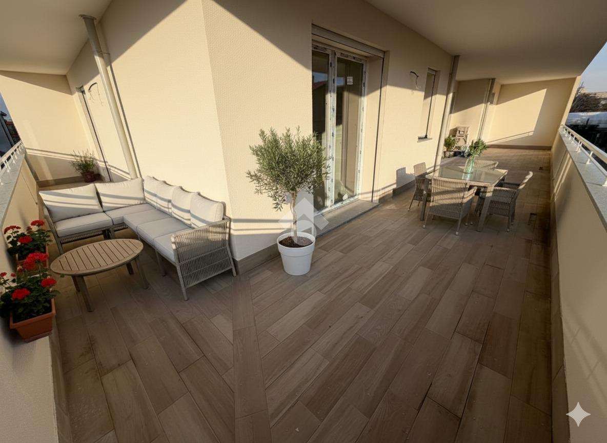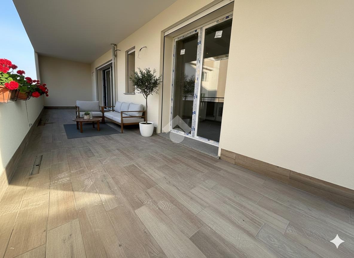 L’ingresso conduce a un’ampia zona giorno con cucina a vista, elegante e funzionale, con affaccio su un grande terrazzo coperto, ideale per vivere appieno lo spazio esterno in ogni stagione.