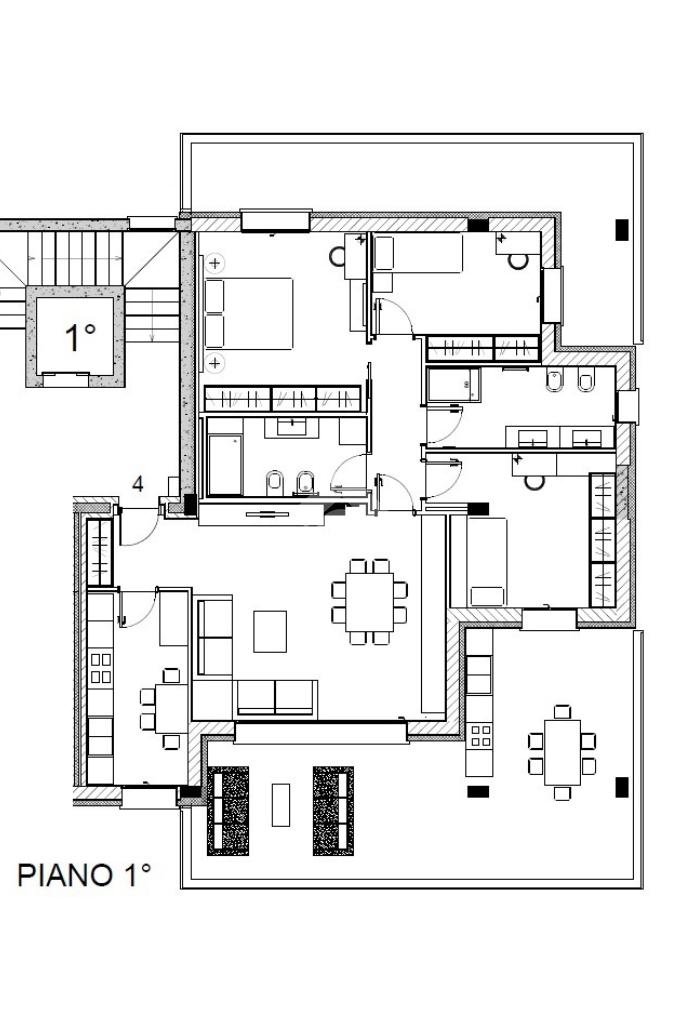 Prestigioso quadrilocale di circa 120 mq al primo piano, caratterizzato da ambienti ampi, luminosi e funzionali.