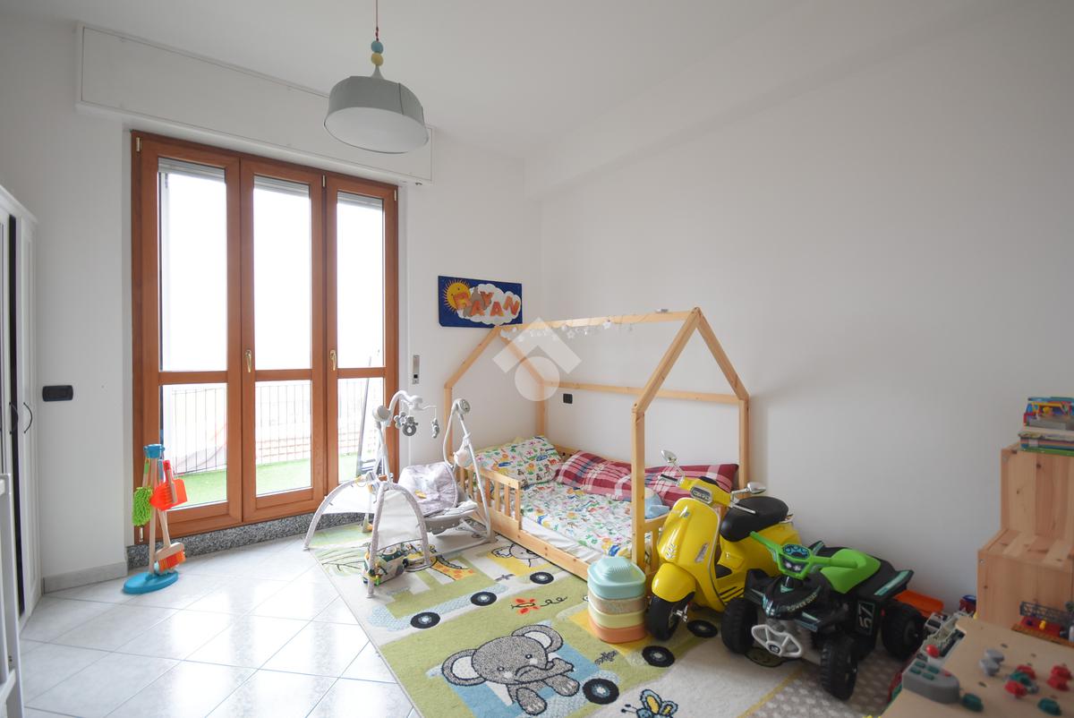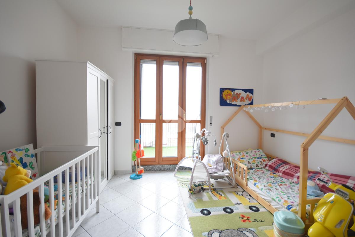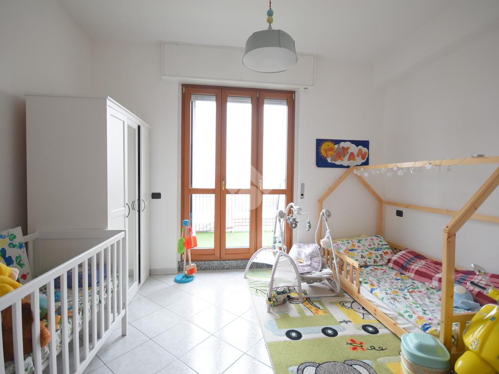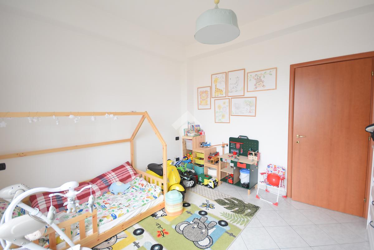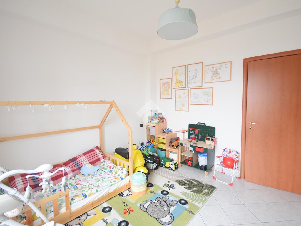 La zona notte è distribuita in modo intelligente e accoglie una spaziosa camera matrimoniale e una cameretta, quest'ultima dotata di un secondo balcone privato che garantisce una doppia esposizione e un'ottima ventilazione naturale.
