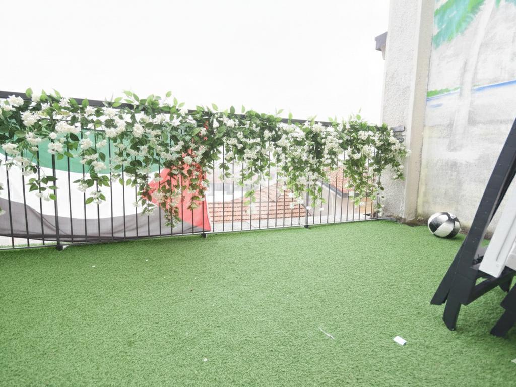 L’ingresso si apre su un soggiorno luminoso che comunica direttamente con il primo balcone della casa, offrendo uno sfogo esterno ideale per i momenti di relax.