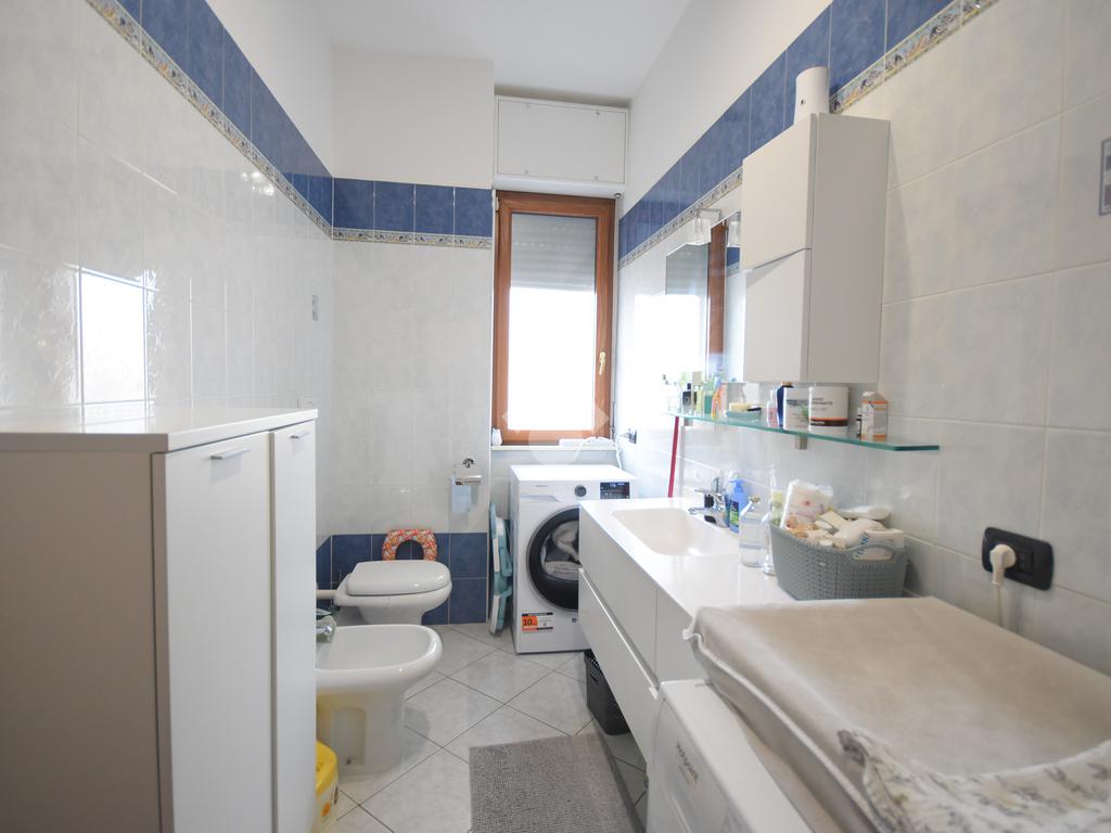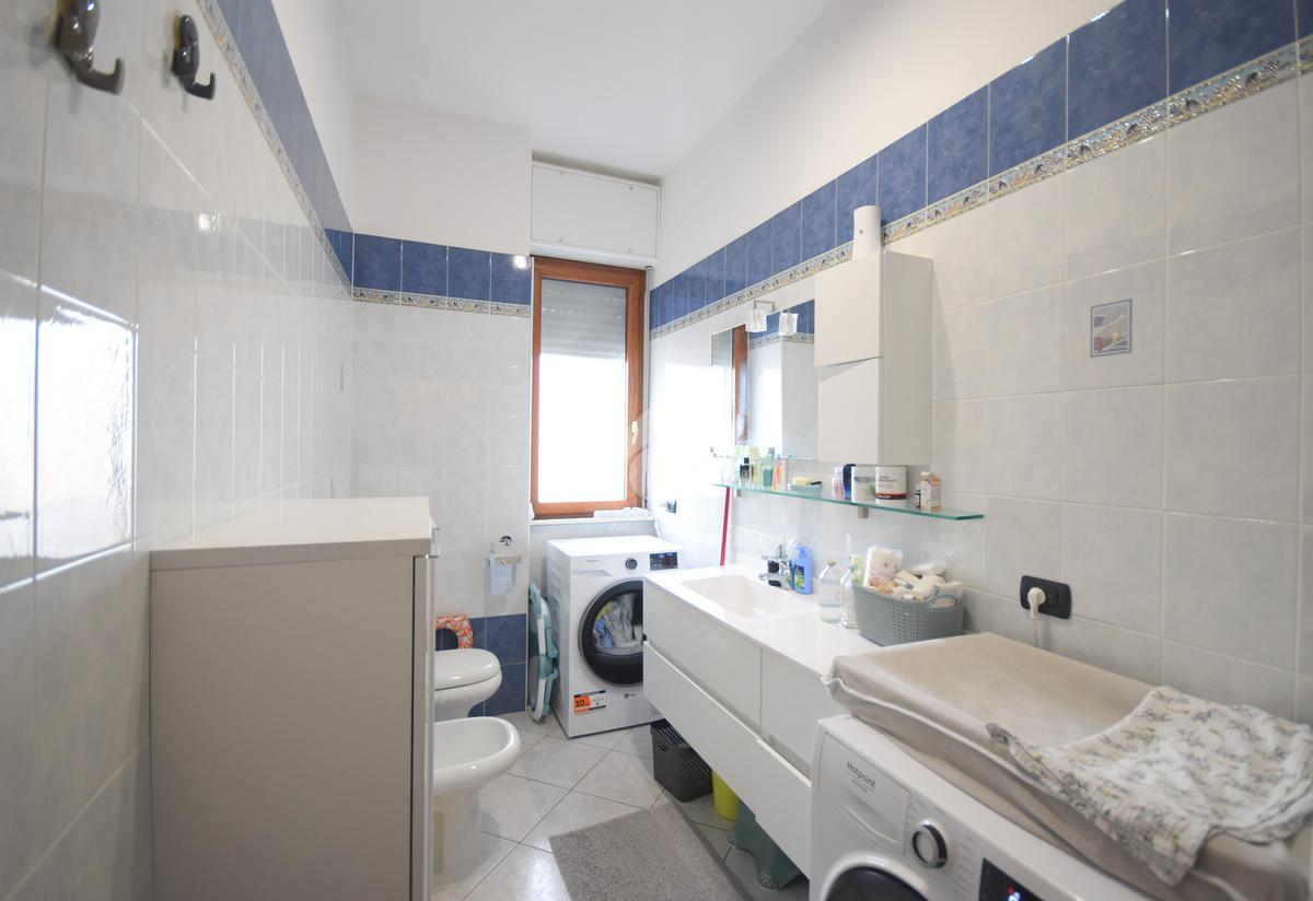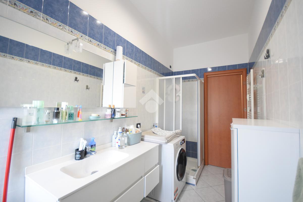 Il bagno, curato nei dettagli, dispone di un ampio box doccia, mentre un funzionale ripostiglio completa la disposizione degli interni, offrendo uno spazio indispensabile per l'organizzazione quotidiana.