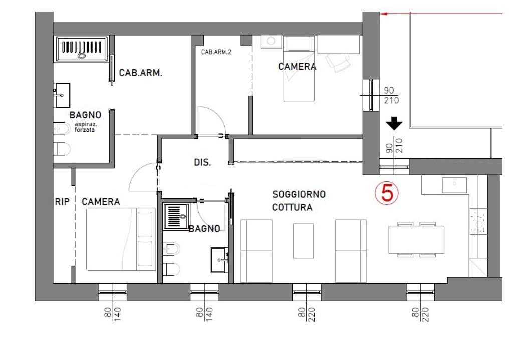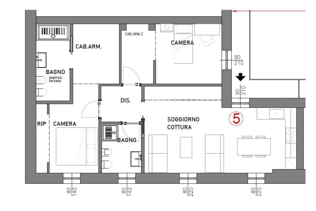 La proprietà dispone di doppi servizi: uno finestrato e uno di servizio riservato alla camera matrimoniale.