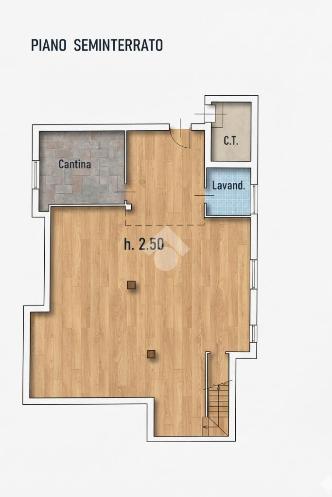 Al piano seminterrato, collegato internamente da una comoda scala in muratura, si trova la grande taverna con finestre, ideale come spazio multifunzionale per momenti conviviali, palestra, home cinema o studio.
