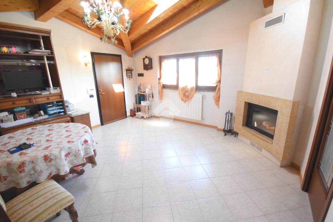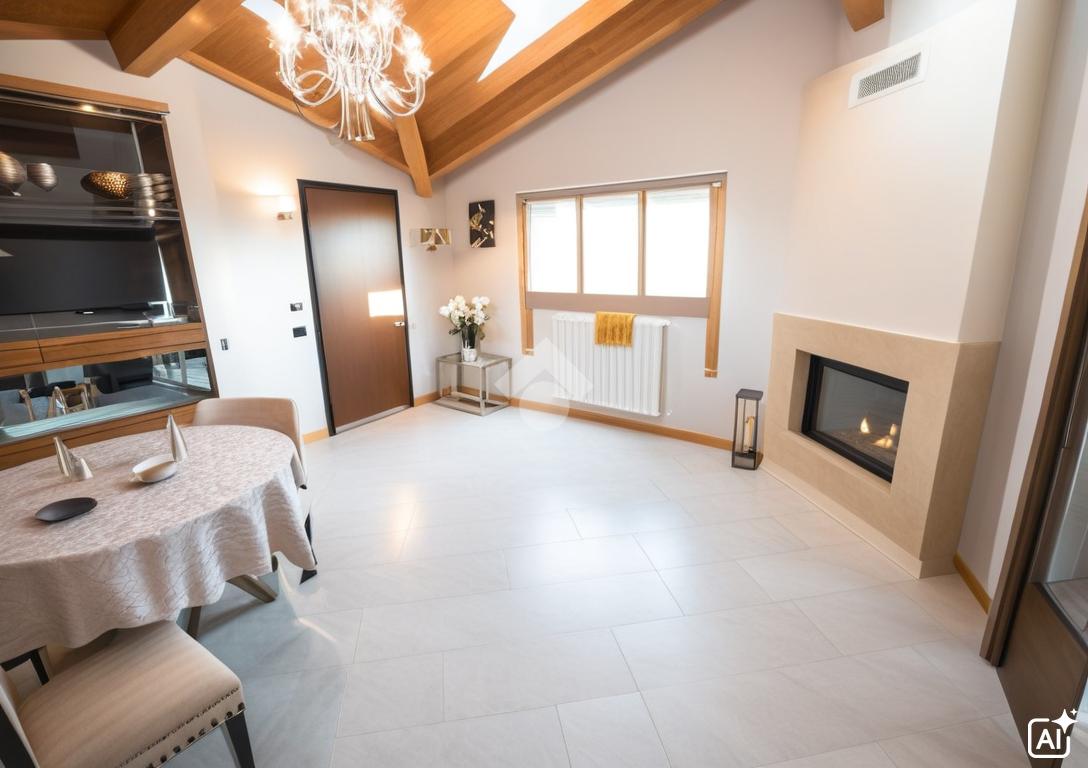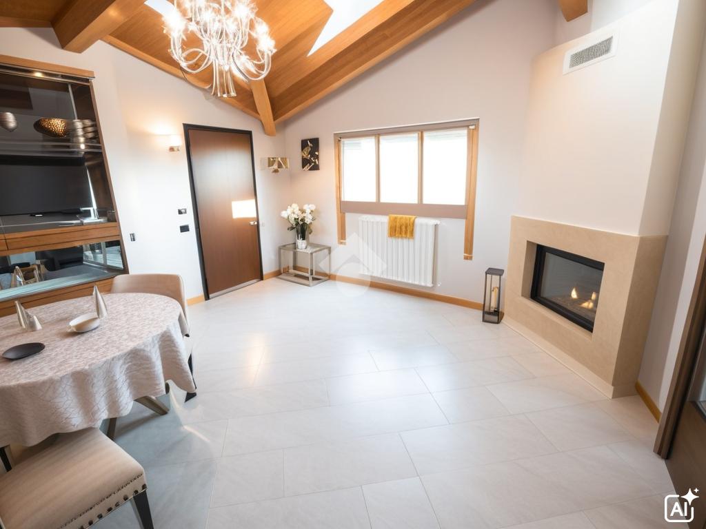 Questa abitazione, unica sul piano di circa 100 mq, si distingue per la sua ampiezza e per le finiture raffinate, con travi a vista che riscaldano ogni ambiente, donando un'atmosfera accogliente e suggestiva.