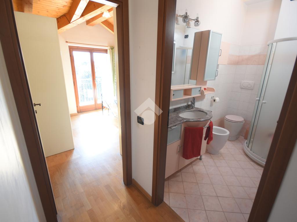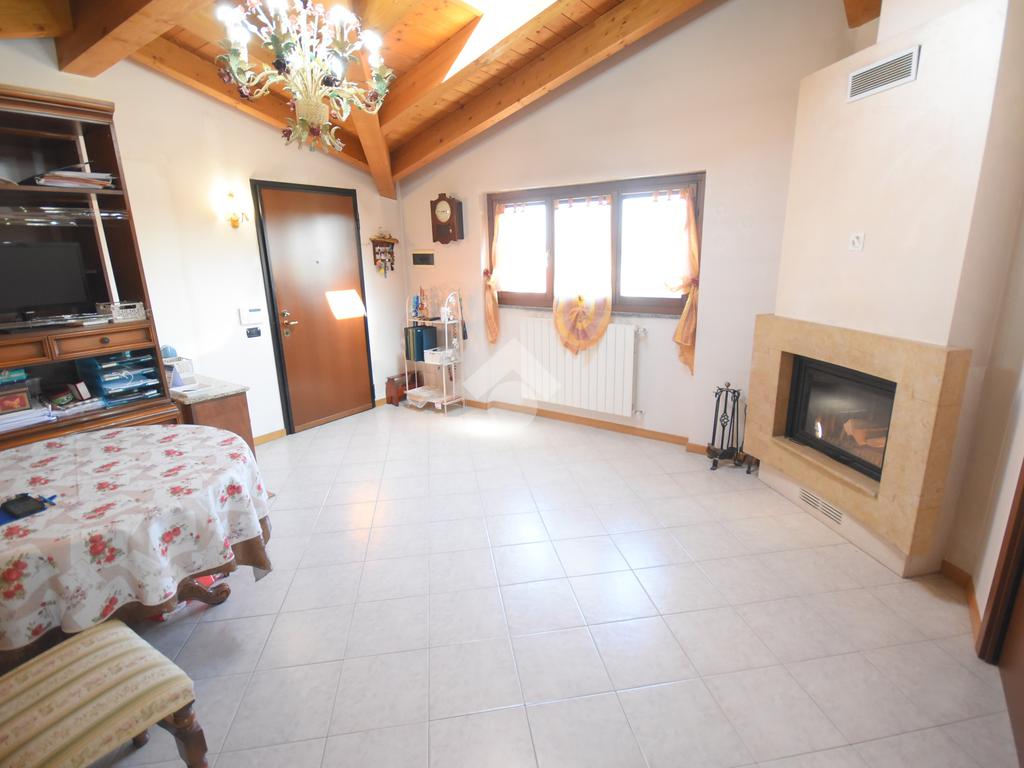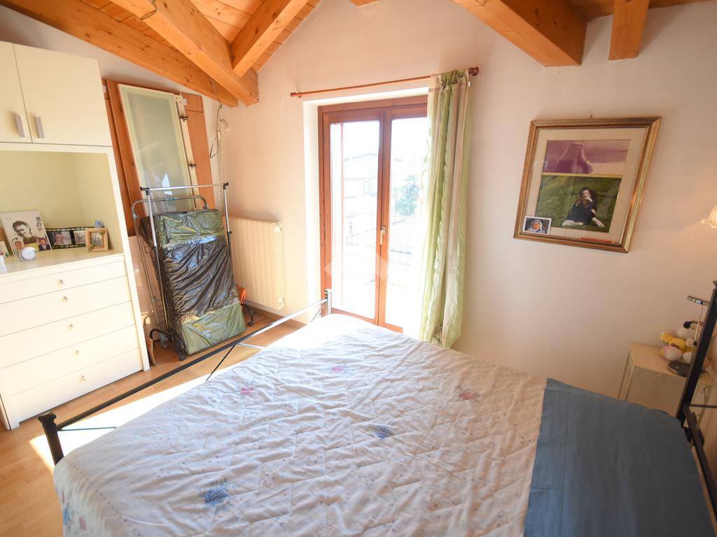 Questa abitazione, unica sul piano di circa 100 mq, si distingue per la sua ampiezza e per le finiture raffinate, con travi a vista che riscaldano ogni ambiente, donando un'atmosfera accogliente e suggestiva.